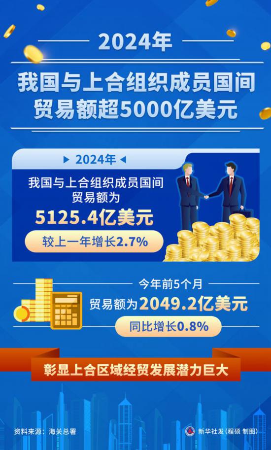 新華社青島7月3日電(記者王凱、鄒多為)海關(guān)總署2日發(fā)布數(shù)據(jù)顯示,2024年,我國與上合組織成員國間貿(mào)易額為5125.4億美元,較上一年增長2.7%;今年前5個月,貿(mào)易額為2049.2億美元,同比增長0.8%,彰顯上合區(qū)域經(jīng)貿(mào)發(fā)展?jié)摿薮蟆?/p>