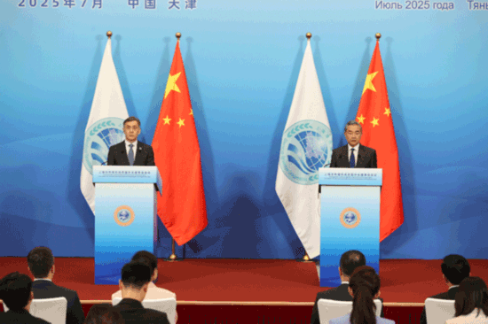 2025年7月15日,中共中央政治局委員、外交部長王毅在天津主持上海合作組織成員國外長理事會會議。