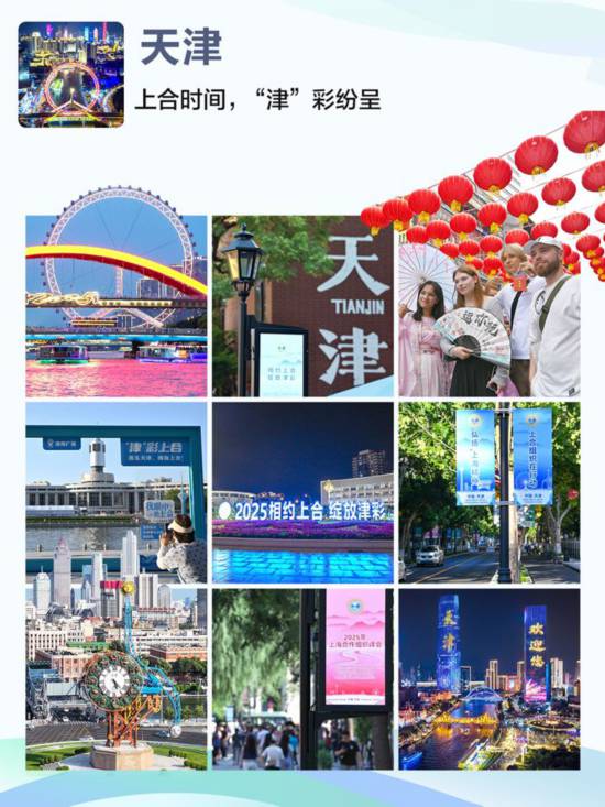 天津津灣廣場,游客在一處“2025年上海合作組織峰會”主題裝飾物打卡。